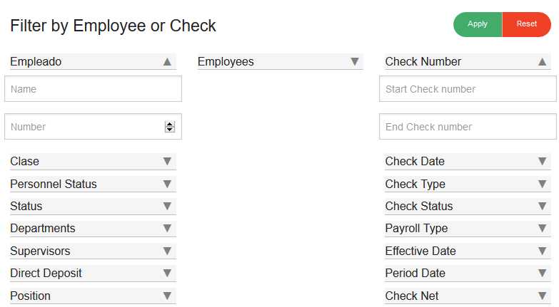 The application filters allows to search historical data with ease. Filter by: employee number, payroll date, period ending, voucher number and so forth. Quick access links allows you to acces the most used reports with the click of a button.